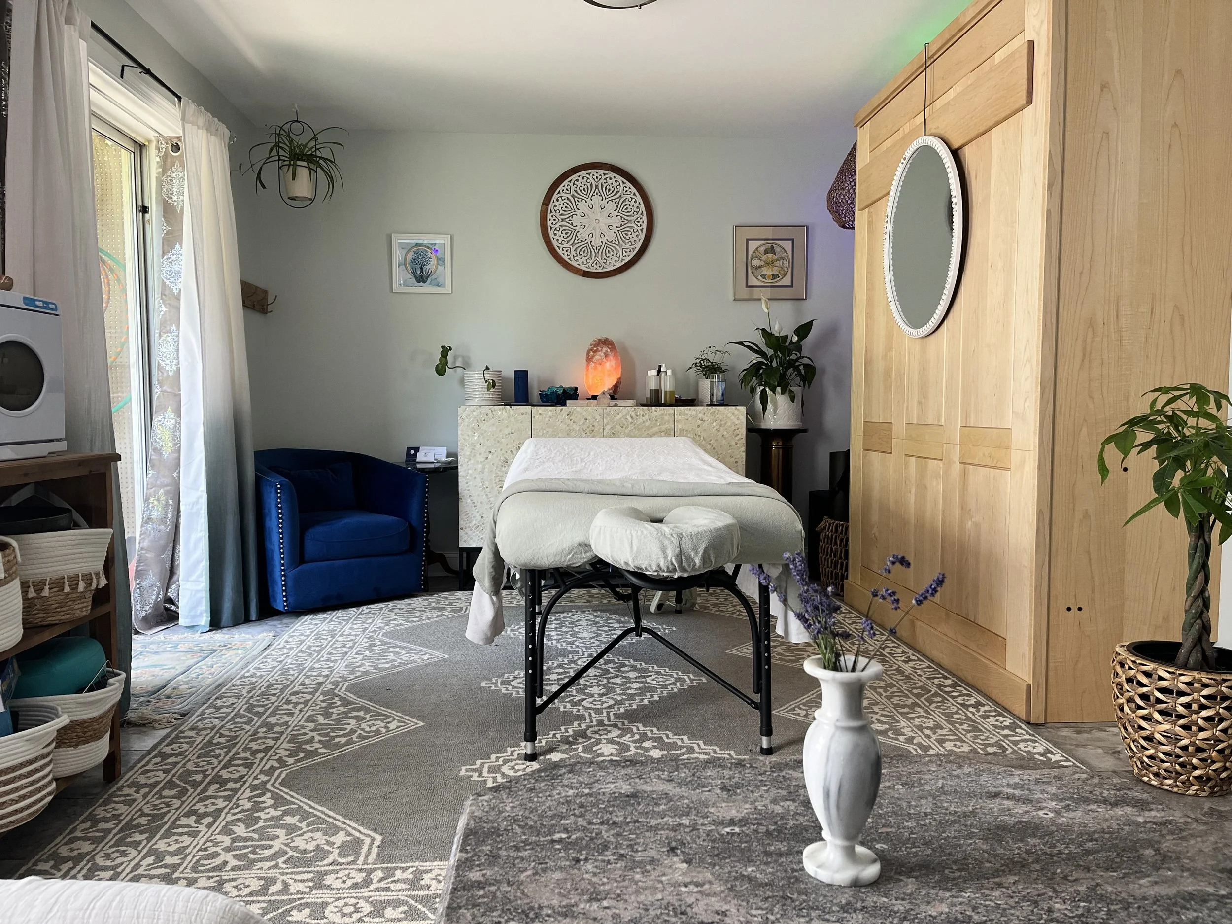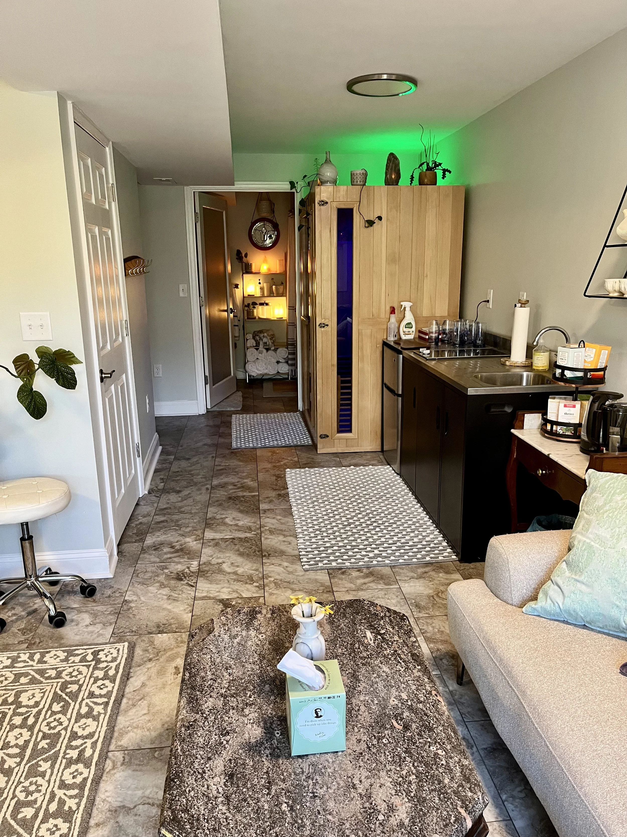 Welcome to the new 7 Moons Spa Sanctuary! The Spa Santuary is a bodywork studio and Spa in the base level of my home in downtown Charlottesville Virginia. The Spa Sanctuary was designed to relax and gently delight the senses, to provide deep restorative rest, and to facilitate healing work. It has been an honor to follow my creative vision in building this space as a container for my lifelong dedication to bodywork, and it is a pleasure to share it with my community. The Spa features a Far Infrared Sauna and a luxurious six foot Soaking Tub.